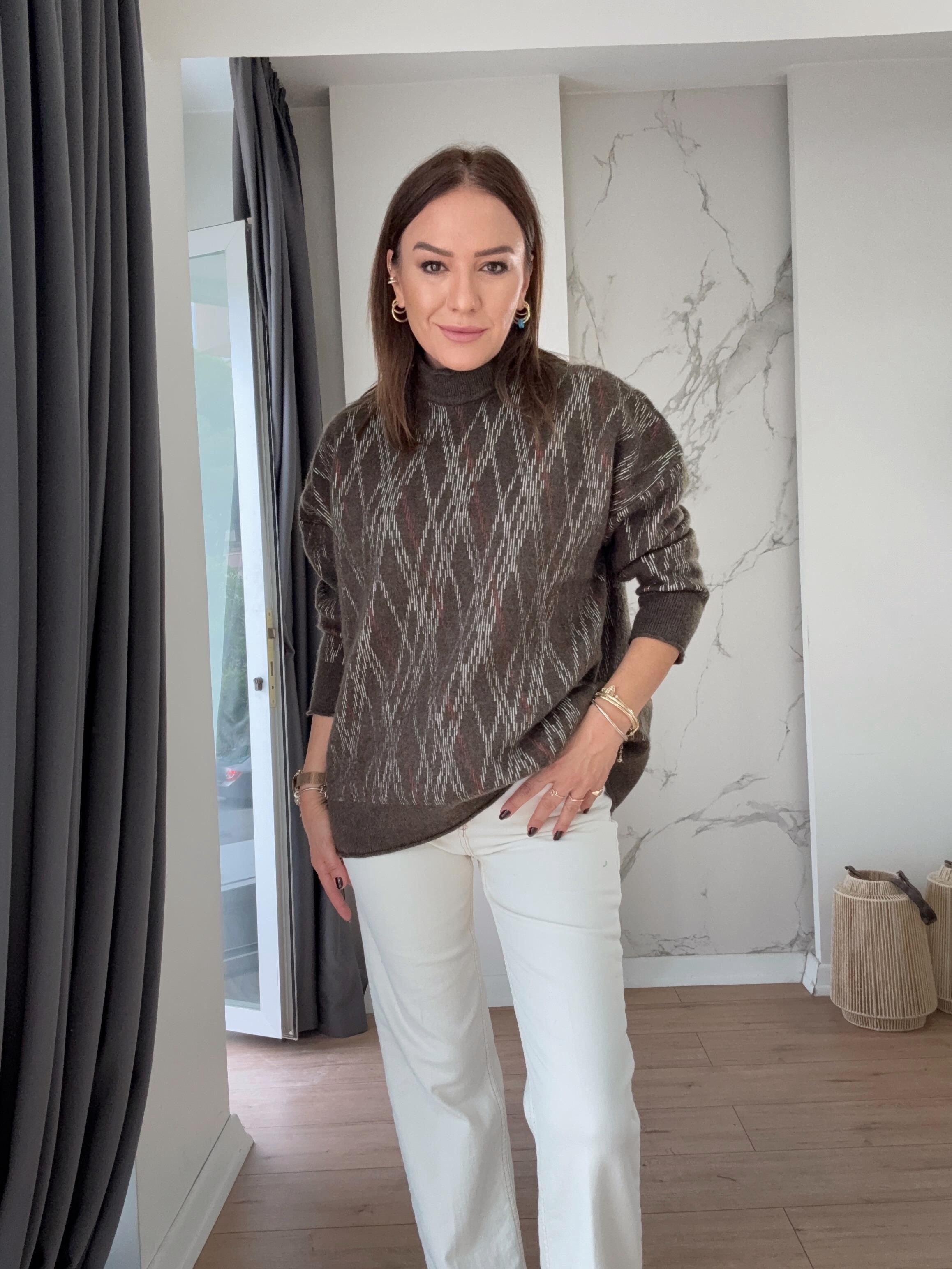 Dik Yaka Çapraz Desen Kazak KAHVE