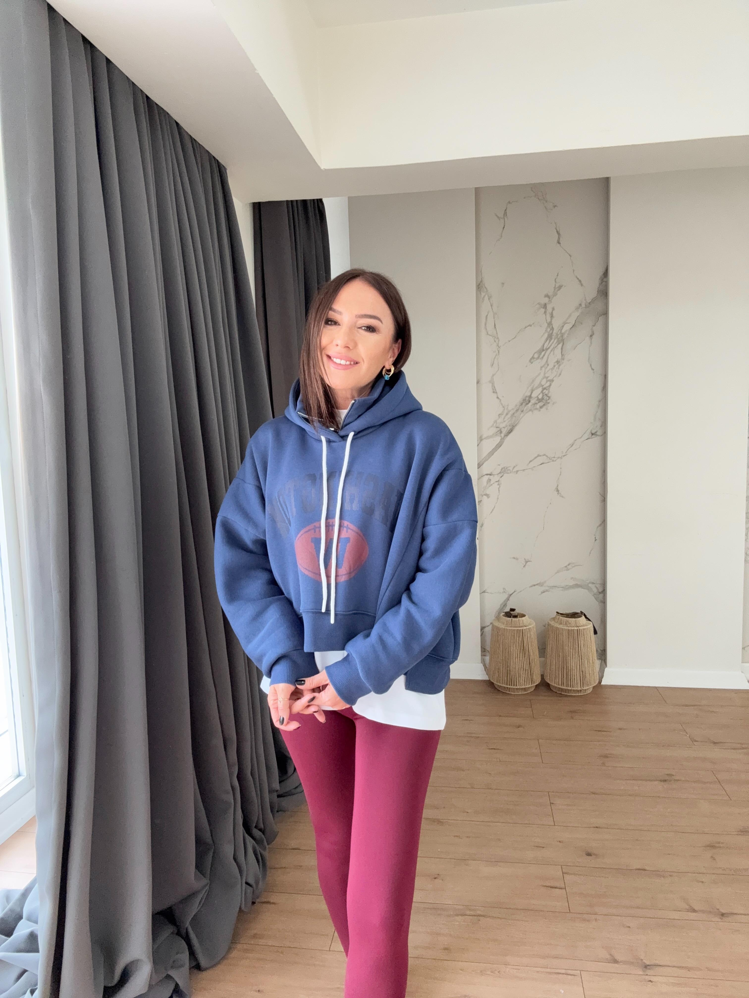 Kapüşonlu Yazı Baskılı Sweat LACİVERT
