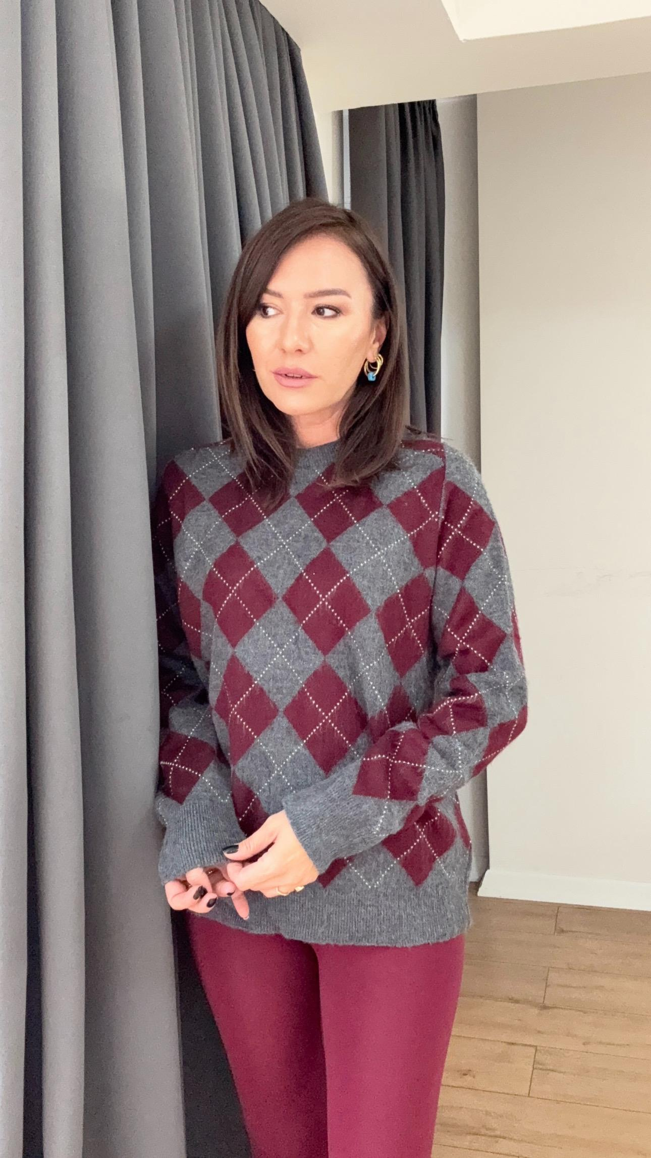 Sandık Yaka Baklava Desen Kazak ANTRASİT