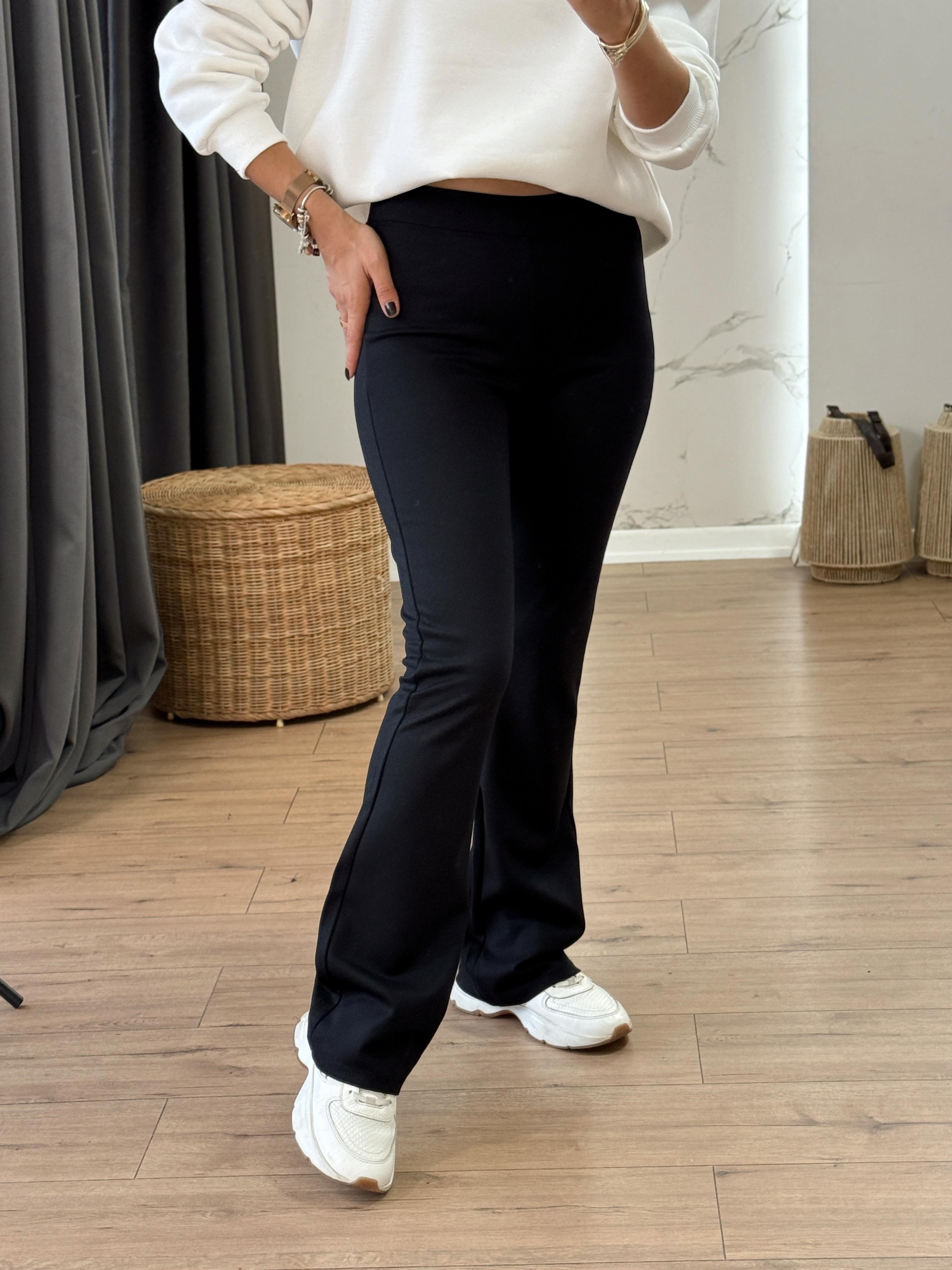 İspanyol Paça Beli Lastikli Pantolon SİYAH