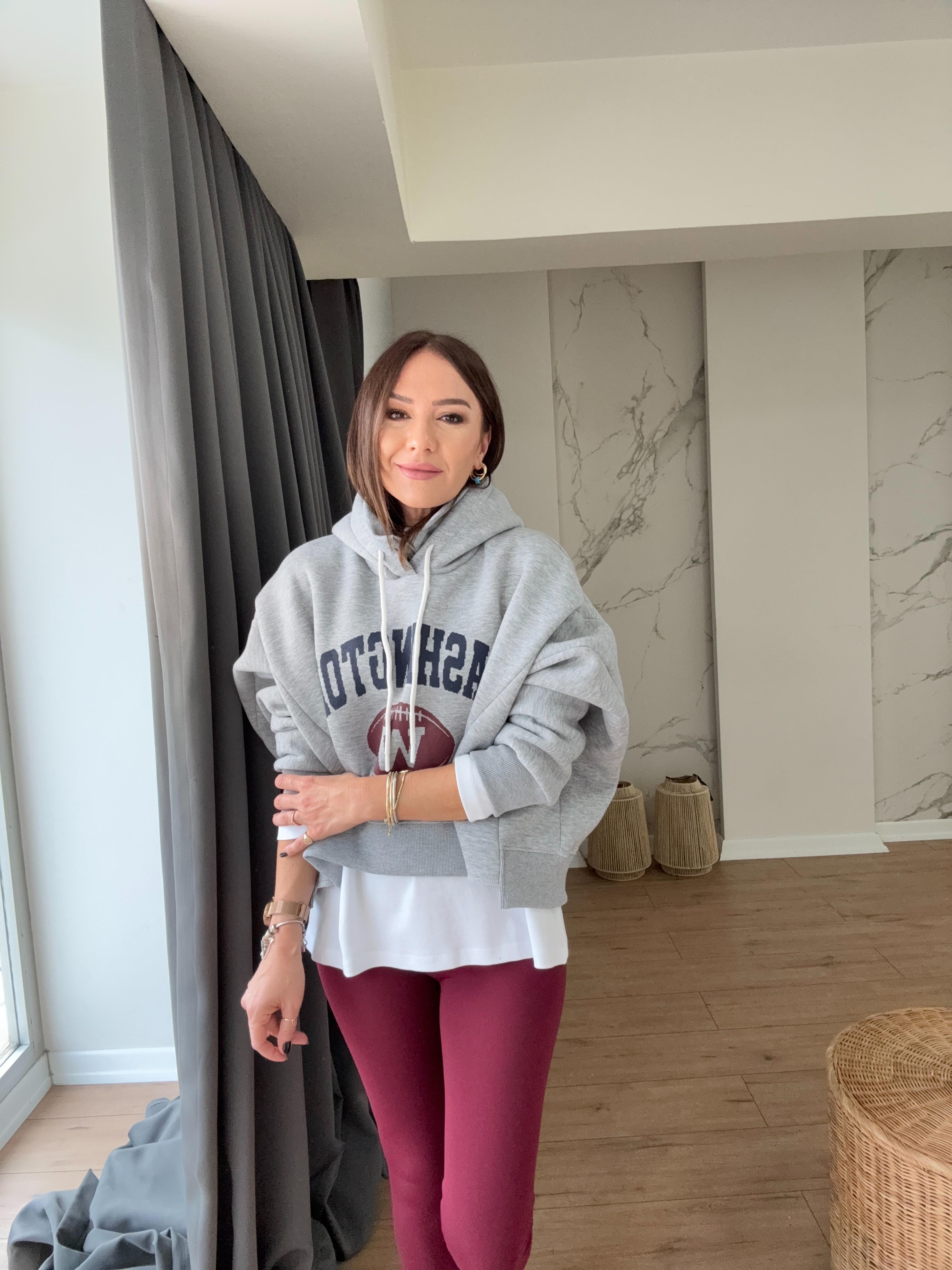 Kapüşonlu Yazı Baskılı Sweat GRİ