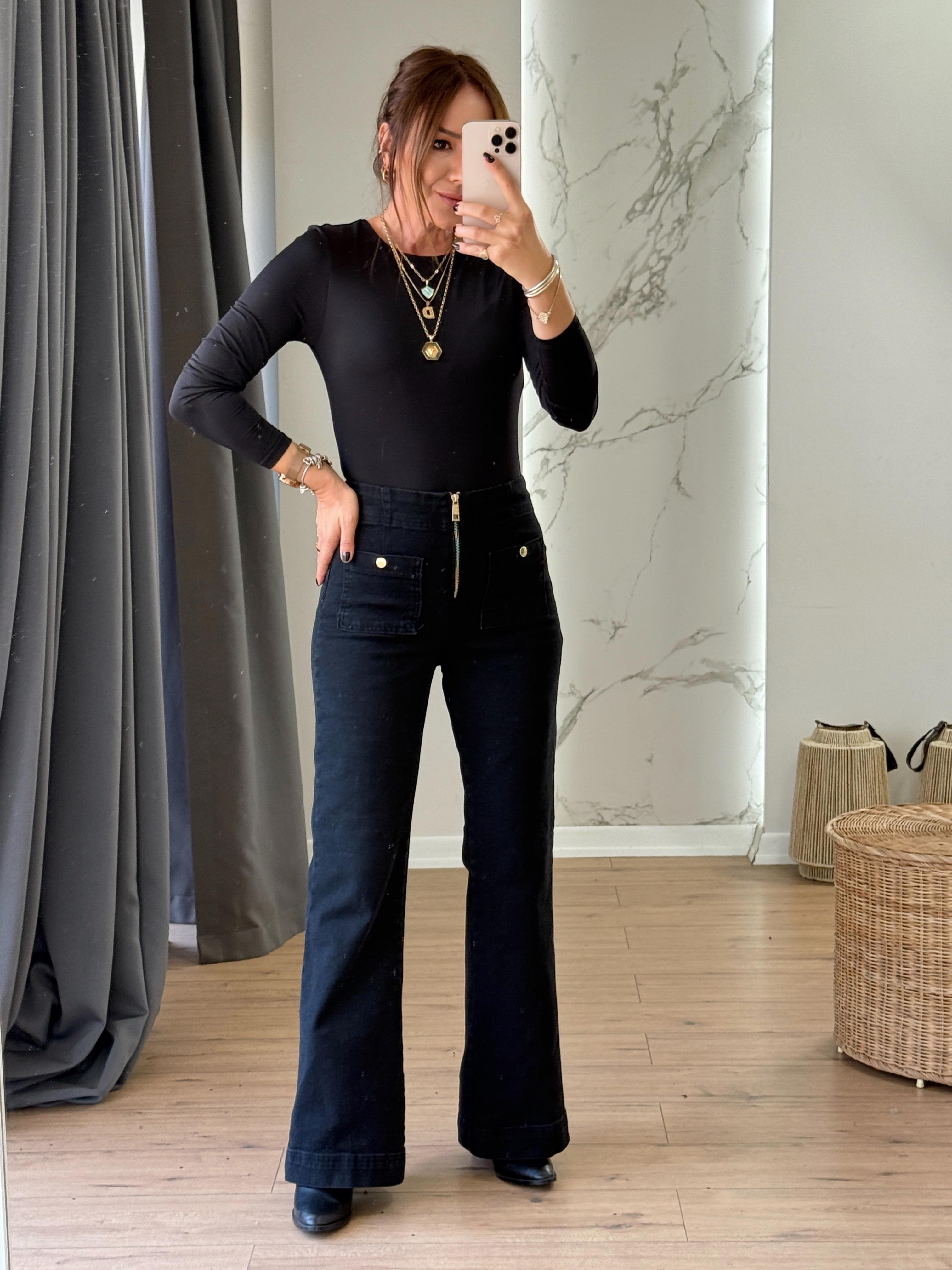 Önden Cepli Fermuar Detaylı Pantolon SİYAH