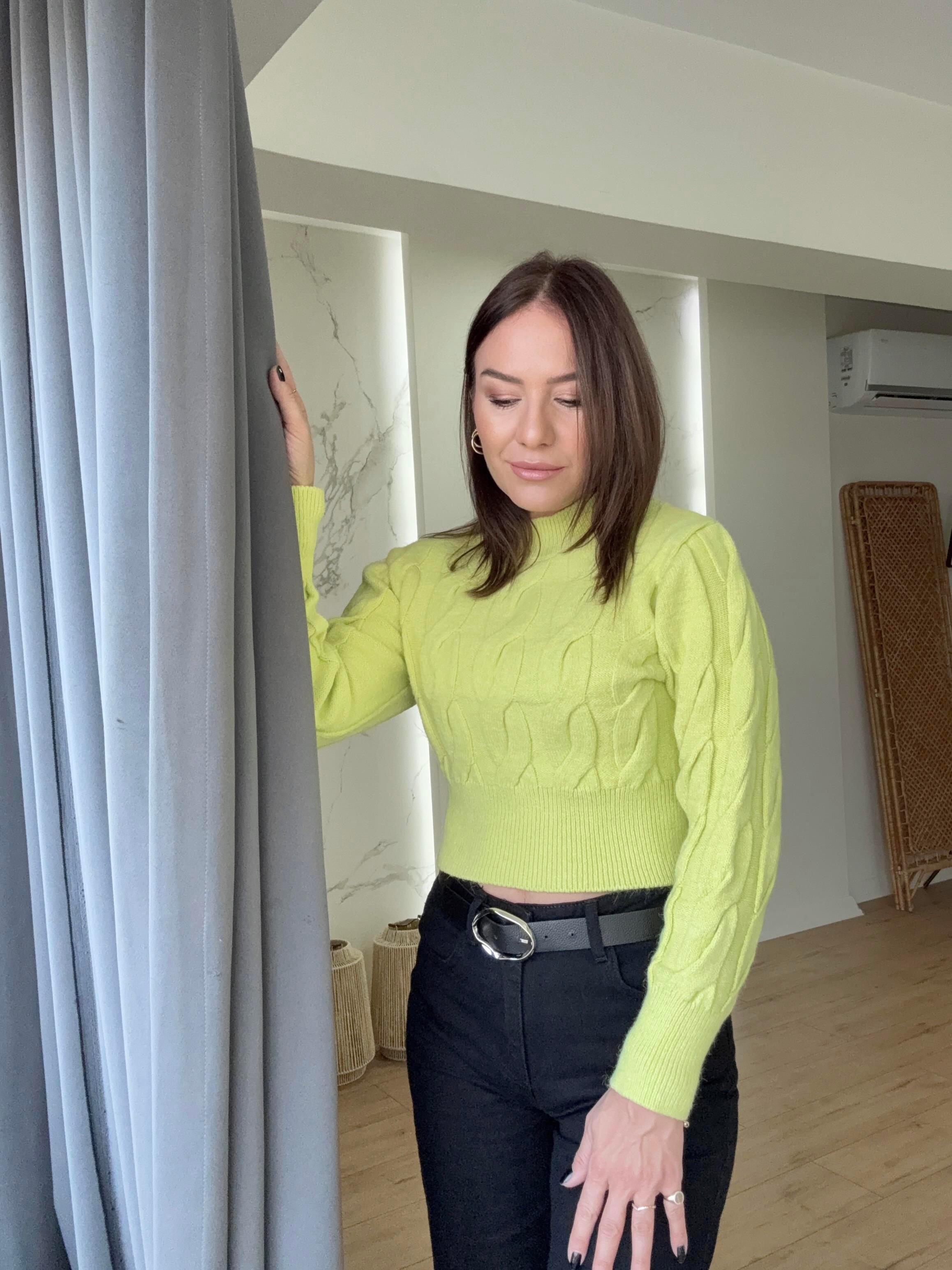 Saç Örgülü Kazak VİZON Saç Örgülü Kazak NEON YEŞİL Saç Örgülü Kazak EKRU