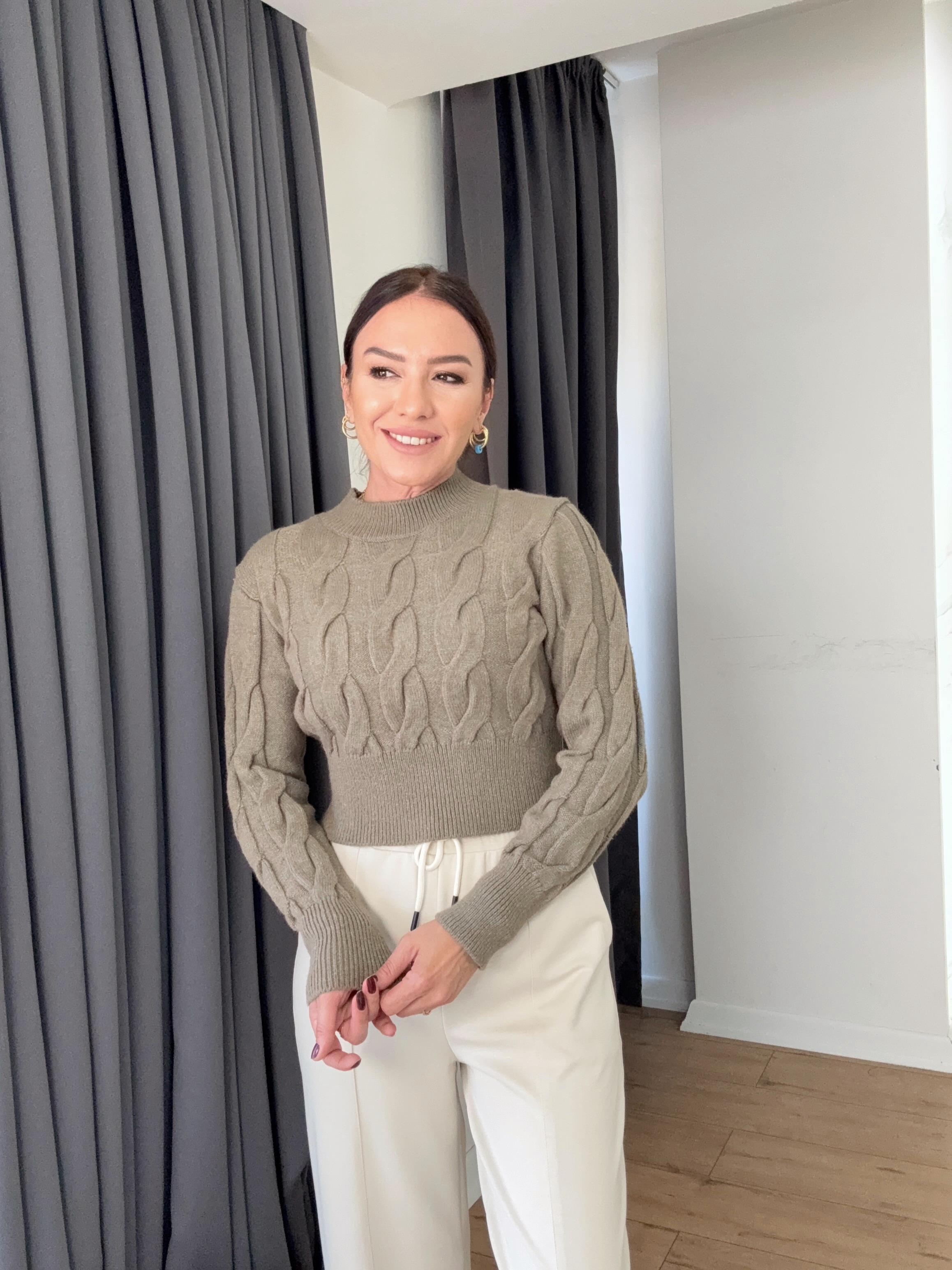 Saç Örgülü Kazak VİZON Saç Örgülü Kazak EKRU