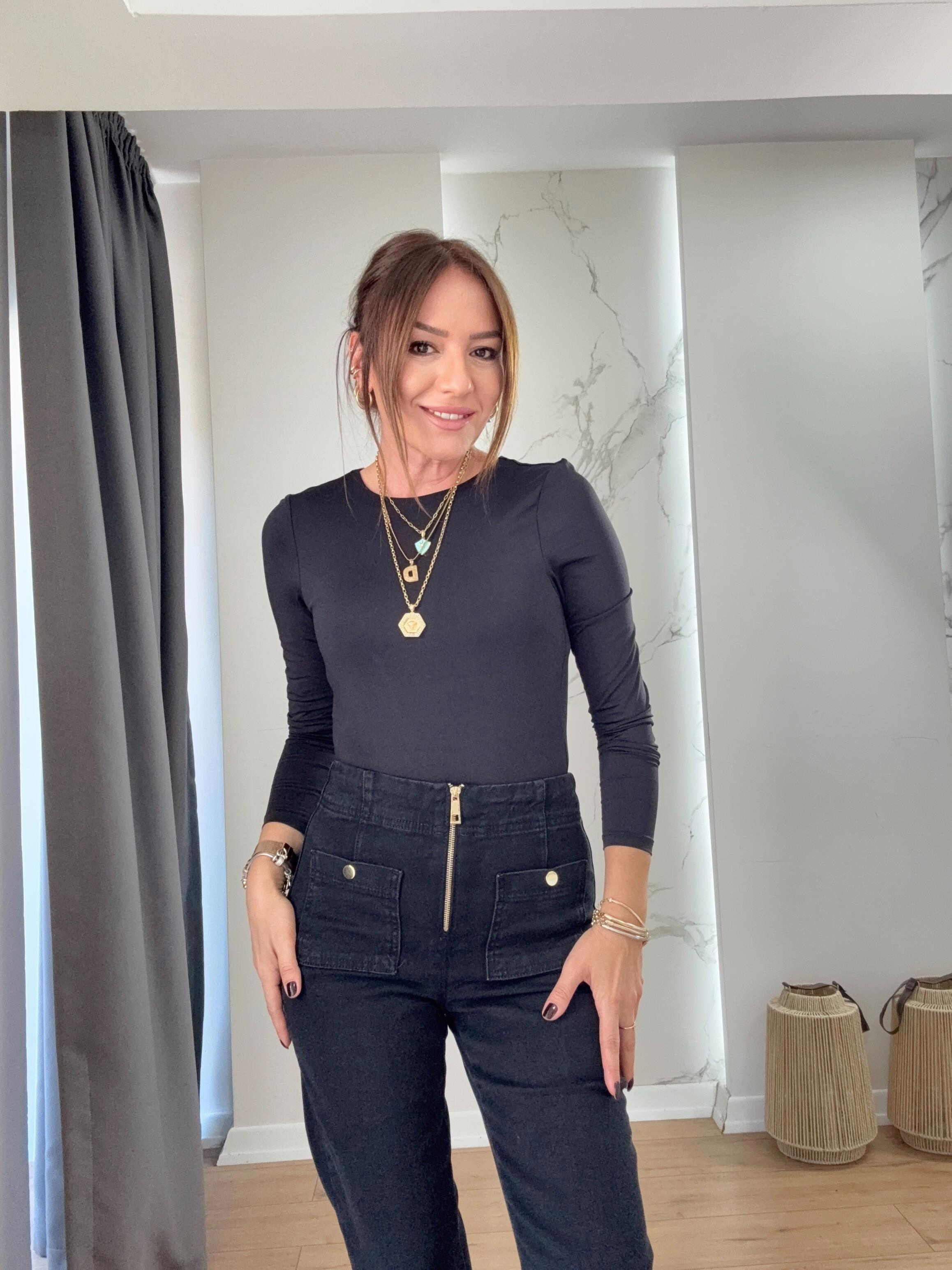 Uzun Kollu Bisiklet Yaka Bodysuit SİYAH
